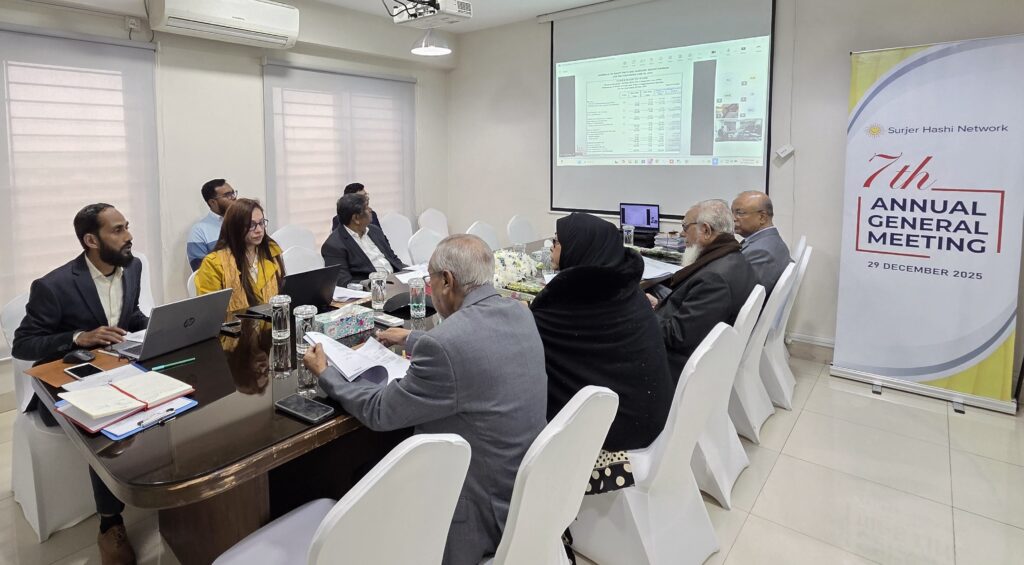 The 7th Annual General Meeting (AGM) of the non-profit organization Surjer Hashi Network (SHN) was held today, 29 December 2025, at the organization’s head office. Honorable members of the Board of Directors, general members of the company, and members of SHN’s senior management team were present at the meeting.